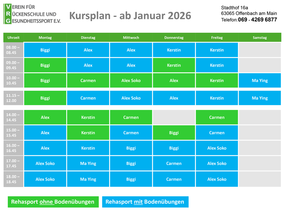 Unser Kursplan informiert Sie über die einzelnen Rehasport-Gruppen.